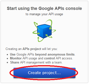 2. 구글 api를 사용한 적이 없으면 아래와 같은 화면이 나온다. 그러면 Create Project 버튼을 누른다.